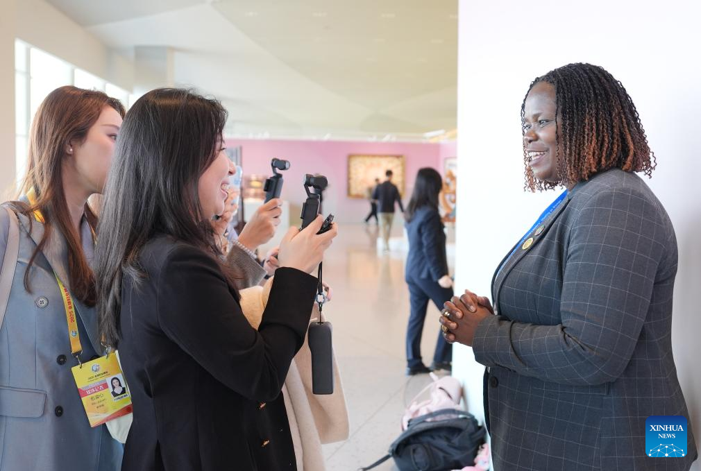 Anna Mutavati from the United Nations Entity for Gender Equality and the Empowerment of Women speaks during an interview at the Global Leaders' Meeting on Women in Beijing, capital of China, Oct. 13, 2025. The Global Leaders' Meeting on Women was held in Beijing on Monday. (Xinhua/Xu Rui)