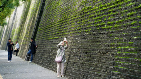 City wall covered with green coat attracts visitors in Xi'an, NW China