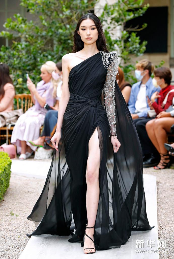 7月7日,模特在法國巴黎高級(jí)定制時(shí)裝周上展示Zuhair Murad品牌2021/2022秋冬新品。