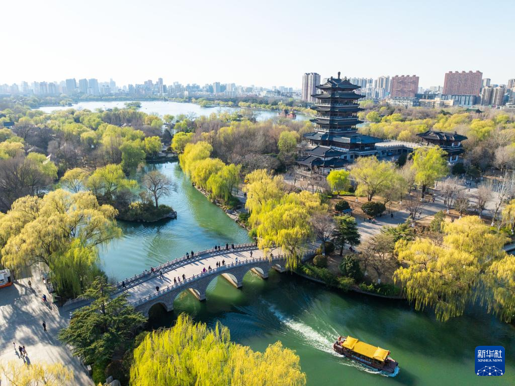 3月18日拍摄的山东省济南市大明湖景色(无人机照片)。