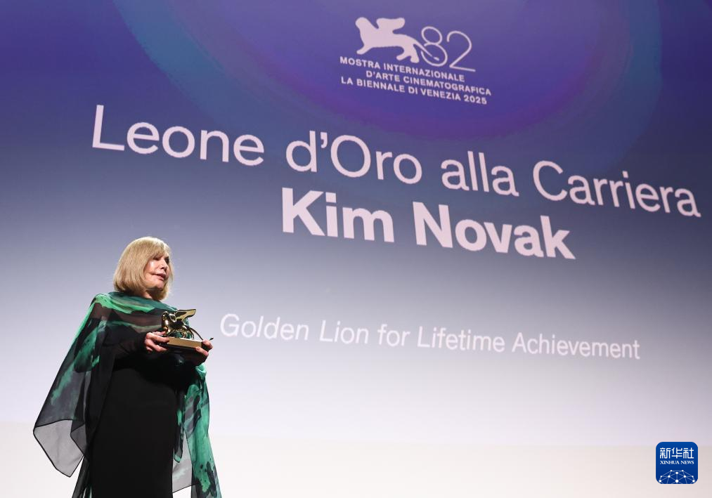 当日,在意大利水城威尼斯举行的第82届威尼斯国际电影节上,美国演员金·诺瓦克获颁终身成就金狮奖。