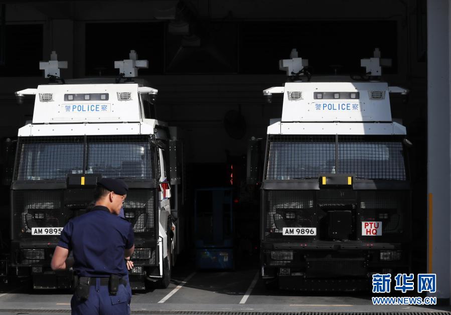 在香港警務(wù)處警察機動部隊總部,警車待命(2月4日攝)。新華社記者 李鋼 攝