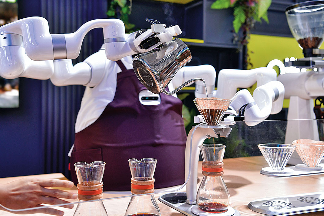 2024年8月28日,一款AI+咖啡大师机器人在冲泡咖啡