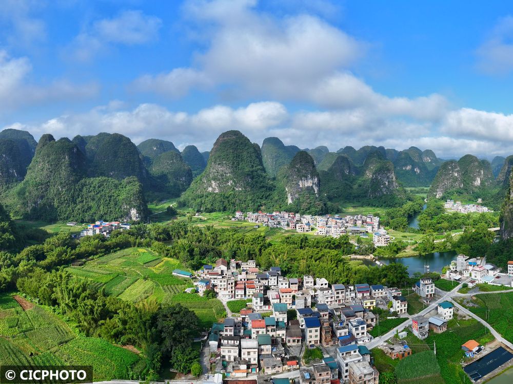 ↑2025年9月18日在广西河池市罗城仫佬族自治县小长安镇罗东村拍摄的景色。(无人机照片)CICPHOTO/韦如代 摄