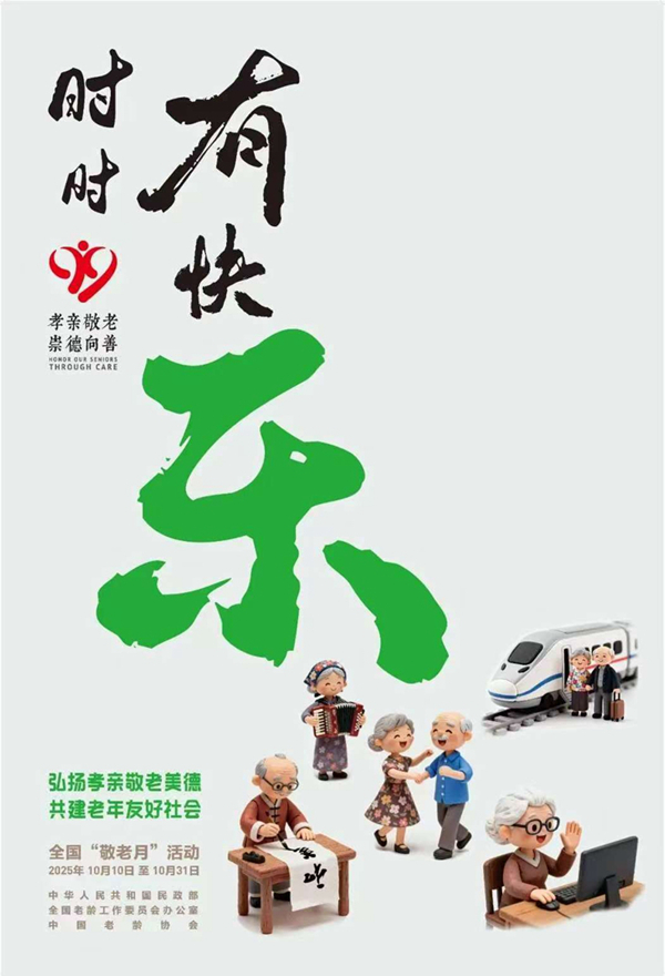2025年全国“敬老月”以“弘扬孝亲敬老美德,共建老年友好社会”为主题,各地、全国老龄委各成员单位将于10月10日至31日开展人口老龄化国情教育、走访慰问和关爱帮扶老年人、老年用品和服务项目宣传推广、老年人健康促进、老年人精神文化生活提升、老年人权益保障法治护航等活动。为加强宣传工作,营造敬老爱老助老浓厚氛围,现将活动海报、标识、宣传口号发布如下: