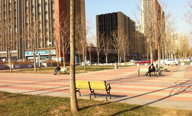 也許是波普公社剛建成的原因,小區(qū)的綠化還未成形,從目前的狀況來(lái)看,樹(shù)木和綠地都剛剛植入,應(yīng)該要經(jīng)過(guò)一段時(shí)間的培育之后,才能達(dá)到綠化的效果。