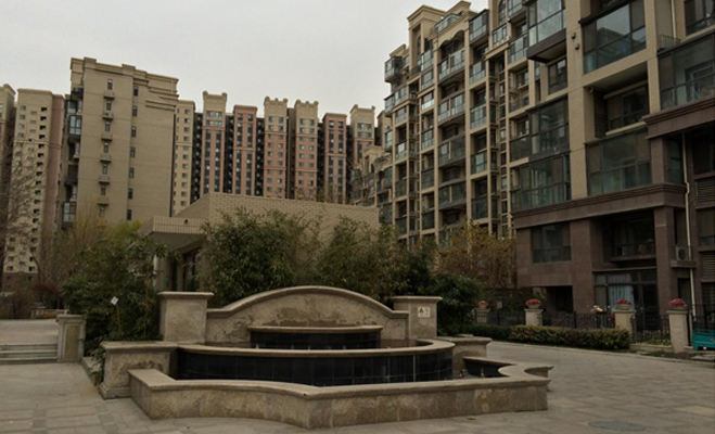 另外,社區(qū)內(nèi)的綠化環(huán)境乏善可陳,安保與衛(wèi)生清理工作也未有值得稱道之處。記者注意到,進入小區(qū)內(nèi)的觀景噴泉似遭“遺忘”,樓盤原售樓處也閉門已久,門前的噴泉池與樹壇久未打理,堆起滿厚厚的灰塵。