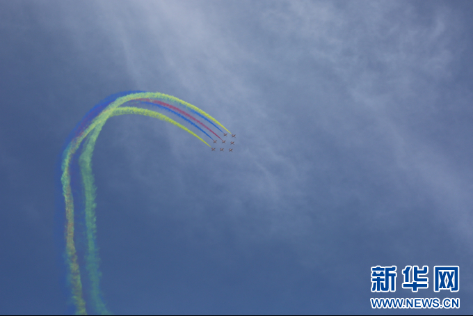 9月20日,空军八一飞行表演队进行飞行表演。新华网 丁梓朔 摄