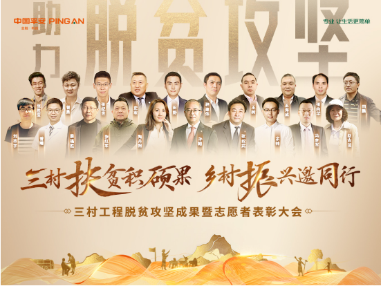 2021年1月6日,中國平安召開脫貧攻堅階段三村工程暨志愿者表彰大會,隆重表彰了三年以來在“三村工程”中做出突出貢獻的單位和個人,同時表彰在2020年度奮斗在社會公益最前線的優(yōu)秀志愿者分會及個人。