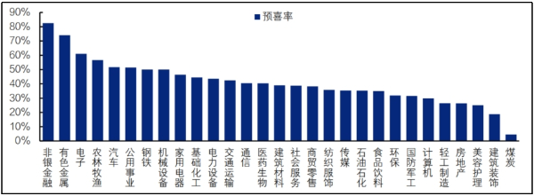 2025年上半年业绩预告中预喜率排名前30的申万二级行业一览