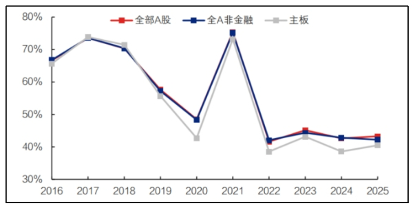 兴业证券首席策略分析师张启尧团队将预告类型分为预喜、预忧两类型,预喜率为预盈公司数量的占比。在已披露业绩预告类型的上市公司中,共652家预喜、854家预忧;全部A股预喜率为43.29%,较2024年的42.64%有所回升。