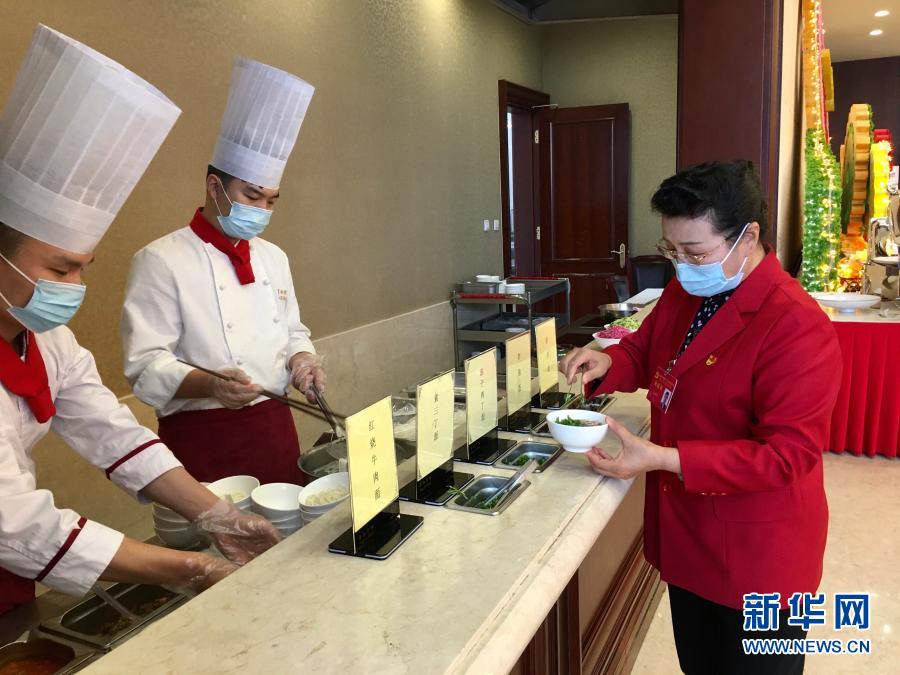 2020年10月29日,受邀列席黨的十九屆五中全會的基層社區(qū)工作者吳亞琴在京西賓館餐廳取了一份小碗面。她表示:“盛面的碗也都是小碗,吃多少打多少?!毙氯A社記者 朱基釵 攝