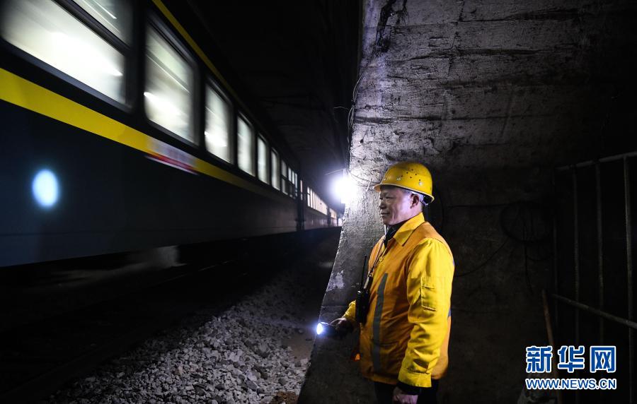 在廣西河池境內(nèi)黔桂鐵路線上的鄧山隧道,中國鐵路南寧局集團(tuán)有限公司柳州工務(wù)段的4名看守工輪換值班,依靠手電筒在黑暗中穿行,及時(shí)巡查隧道中可能出現(xiàn)的各種隱患,確保每天經(jīng)隧道運(yùn)行的59趟客貨列車春運(yùn)安全。鄧山隧道全長773米,是一個(gè)需要人員全天候看守的鐵路隧道。