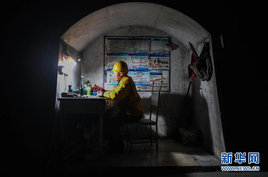 在黔桂鐵路線上的鄧山隧道,看守工廖成根在避車洞內當班(1月30日攝)。