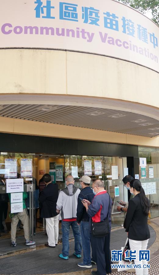 2月26日,在位于香港中央圖書館的社區(qū)疫苗接種中心,市民在入口處排隊。新華社記者 王申 攝
