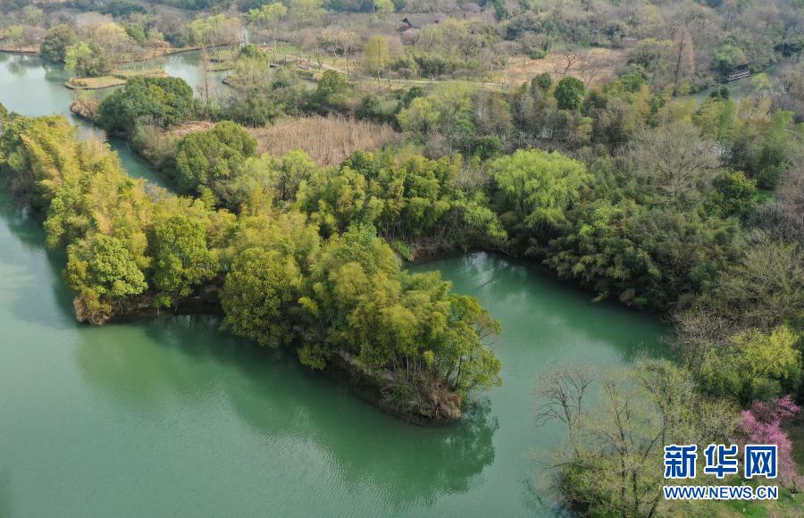 西溪濕地內(nèi)植被吐出新綠(3月2日攝,無人機照片)。