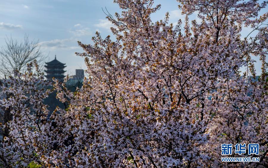 這是3月3日拍攝的鮮花映襯的安康市漢濱區(qū)漢江之濱景色。新華社記者 陶明 攝