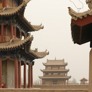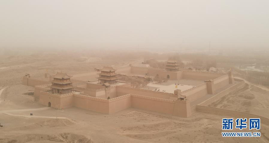 當(dāng)日,甘肅河西走廊部分地區(qū)出現(xiàn)浮塵天氣,嘉峪關(guān)關(guān)城被浮塵籠罩。