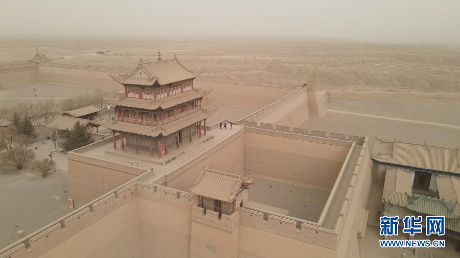 這是3月17日拍攝的嘉峪關(guān)關(guān)城景區(qū)(無人機照片)。新華社記者 張智敏 攝