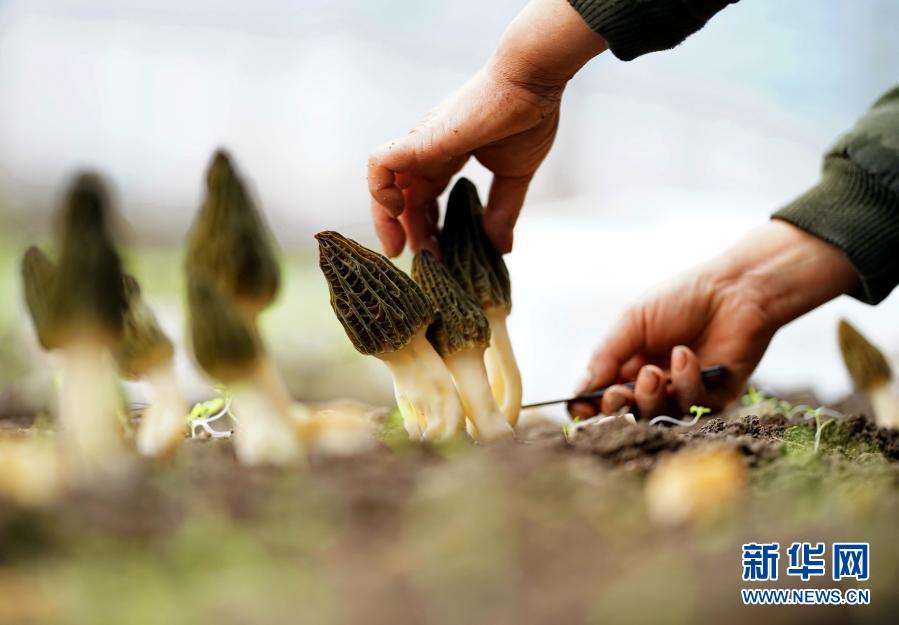 3月20日,河北省唐山市漢沽管理區(qū)農業(yè)總公司第九生產隊的農民在大棚內采收羊肚菌。