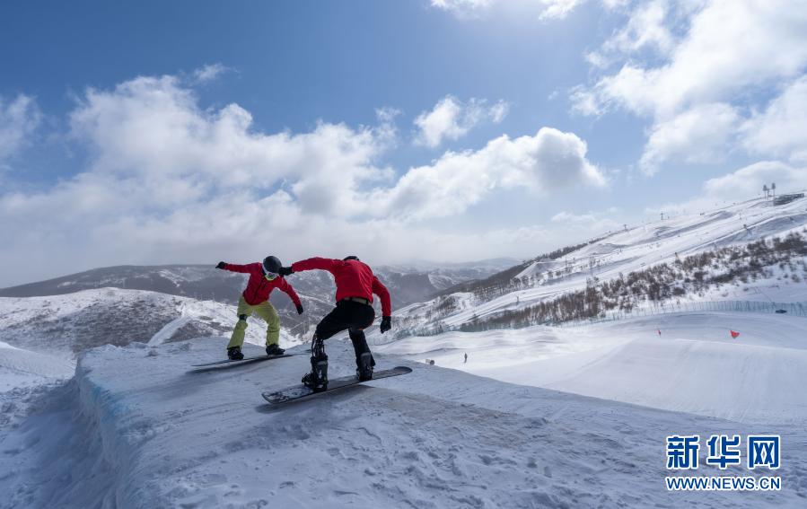 3月20日,冬殘奧會(huì)國(guó)家集訓(xùn)隊(duì)單板滑雪運(yùn)動(dòng)員劉伊揚(yáng)(左)和武中偉在冬殘奧會(huì)訓(xùn)練基地訓(xùn)練。新華社記者 才揚(yáng) 攝
