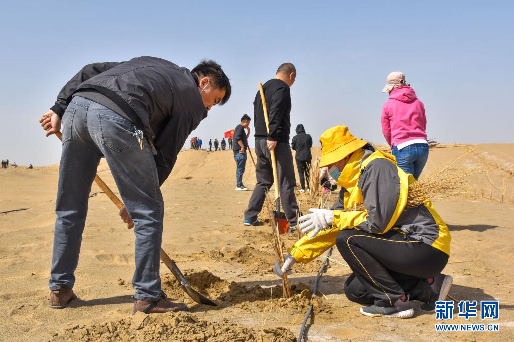 隨著天氣逐漸轉(zhuǎn)暖,在地處塔克拉瑪干沙漠南緣的新疆且末縣,人們紛紛行動(dòng)起來(lái)植樹(shù)防沙,為沙漠增添綠色。