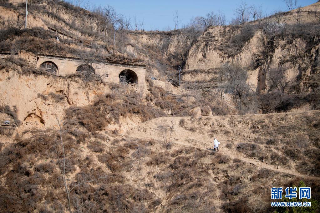 在山西省石樓縣鐵頭村寺山自然村,張尚保背著藥箱行走在山路上(3月24日攝)。新華社記者 楊晨光 攝