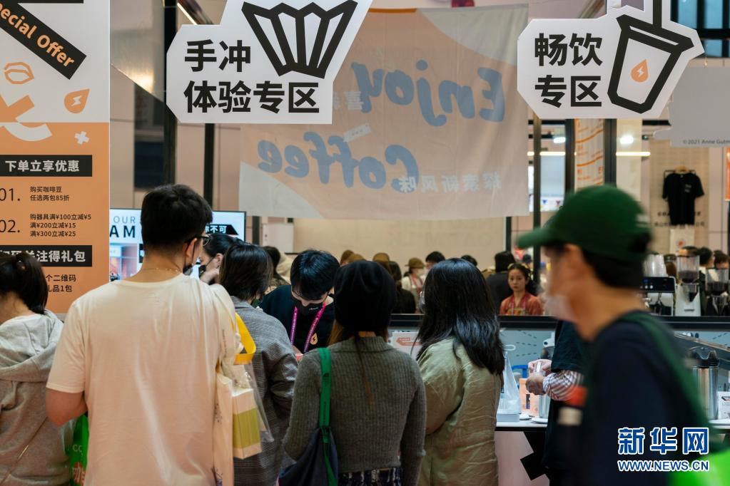 3月29日,人們?cè)跁?huì)場內(nèi)等待品嘗咖啡。