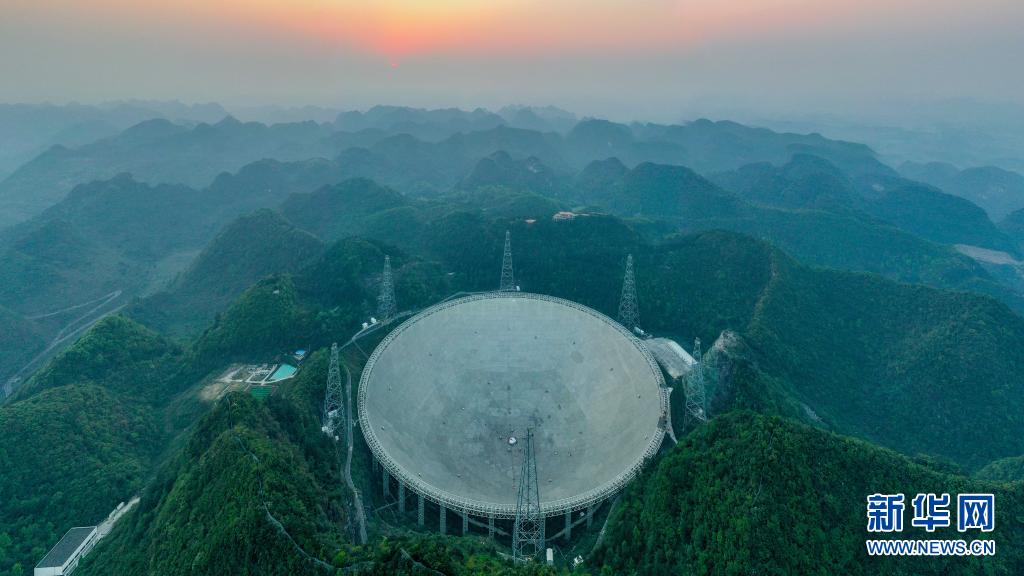在貴州省平塘縣,被譽(yù)為“中國(guó)天眼”的500米口徑球面射電望遠(yuǎn)鏡(FAST)在群山中仰望星空,探求著宇宙奧秘。