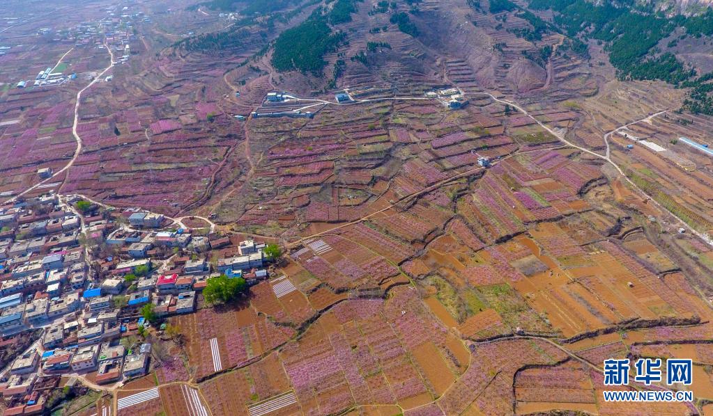 這是3月30日拍攝的濟(jì)南市仲宮街道的桃園風(fēng)光(無人機(jī)照片)。