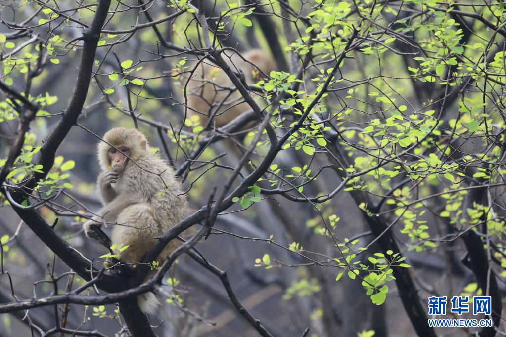 4月3日,在神農(nóng)山風(fēng)景區(qū),野生太行獼猴在樹上嬉戲。隨著氣溫回暖,河南省沁陽市神農(nóng)山風(fēng)景區(qū)野生太行獼猴活躍起來,在山林間嬉戲玩鬧,為景區(qū)增添生機(jī)和靈氣。新華社發(fā)(徐宏星 攝)