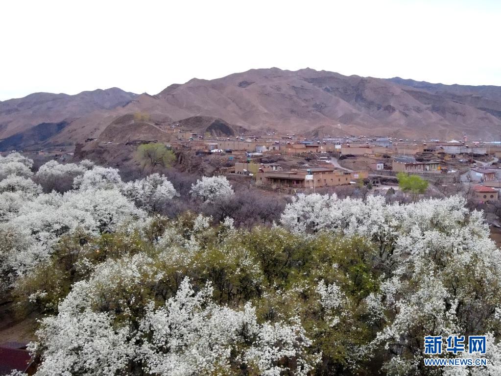 這是4月3日在中衛(wèi)市南長灘村拍攝的梨花(無人機照片)。