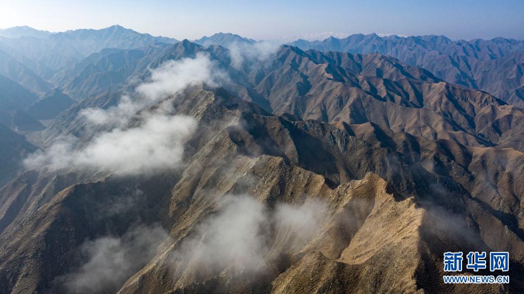 這是黃河黑山峽河段沿線的山巒(4月5日攝,無(wú)人機(jī)照片)。