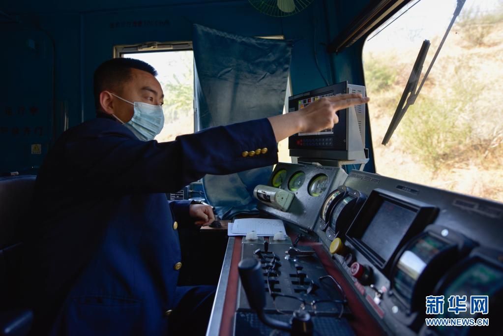 中國鐵路成都局集團(tuán)公司成都客運(yùn)段5633/5634次列車駕駛員趙瑋在發(fā)車前確認(rèn)信號(hào)(4月11日攝)。新華社記者 胥冰潔 攝