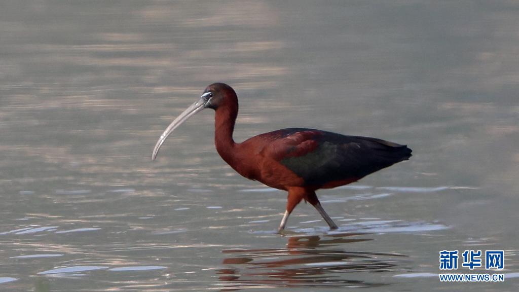彩鹮在福建省霞浦縣福寧灣灘涂覓食(4月17日攝)。一對彩鹮近日現(xiàn)身福建省霞浦縣福寧灣灘涂的視頻,經(jīng)當?shù)孛襟w播發(fā)后引起轟動,各地攝影師及當?shù)厣鷳B(tài)保護志愿者紛至沓來,一睹它們的“芳容”。新華社記者 梅永存攝