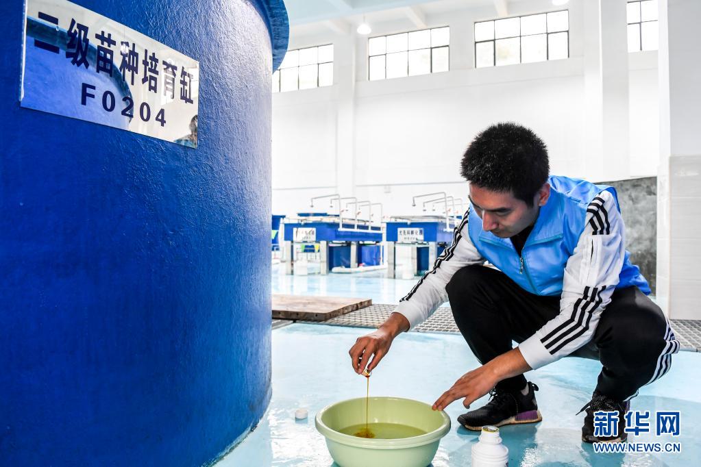 大藤峽魚(yú)類增殖放流站位于廣西桂平市大藤峽水利樞紐南木江副壩旁,是目前珠江流域規(guī)模最大的魚(yú)類增殖放流站,主要承擔(dān)野生、珍稀魚(yú)類增殖繁育、保護(hù)、救治等職能,年最大放流規(guī)模約358萬(wàn)尾,其中珍稀魚(yú)類98萬(wàn)尾。目前,大藤峽魚(yú)類增殖放流站的工作人員正在進(jìn)行魚(yú)苗繁育工作。
