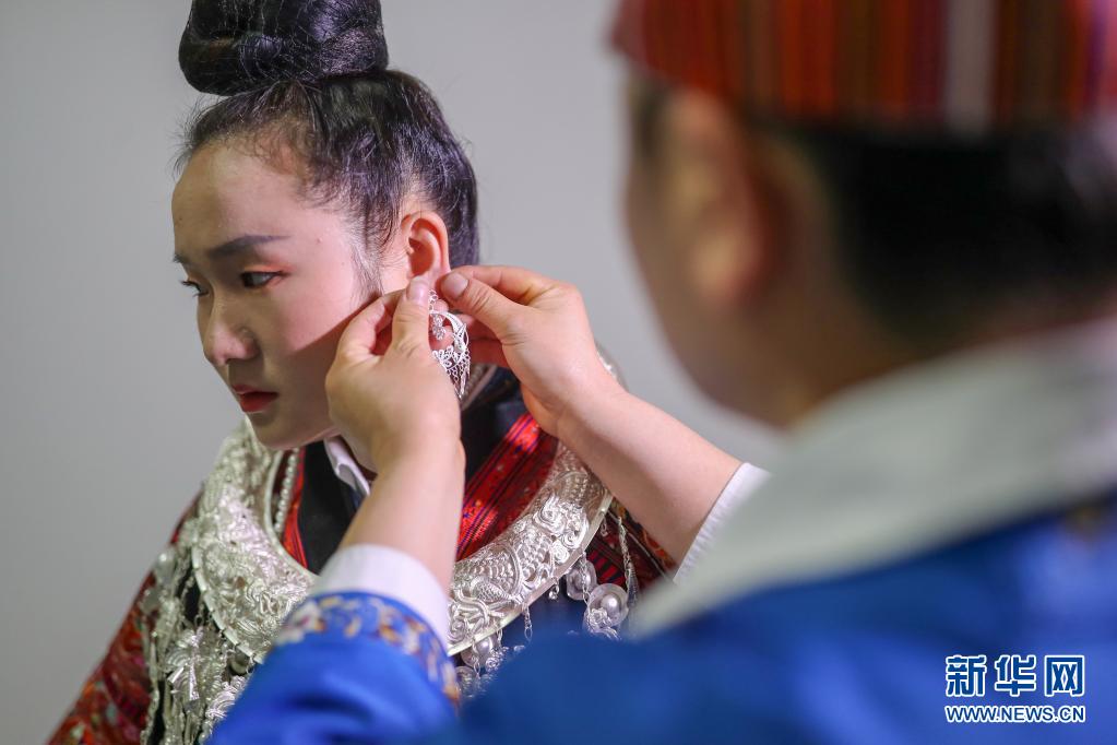 今年姊妹節(jié)前夕,母親張元英把女兒盛裝的銀飾拿到銀飾店里進行清洗,希望女兒能在盛裝巡演上展示最美的一面。4月25日姊妹節(jié)當天,張佳麗早早起床,在母親和同學的幫助下,開始化妝、穿衣、佩戴銀飾,一直忙到9點才準備完畢。身著盛裝站在巡演隊伍中,張佳麗說:“這是我們苗族同胞最大的節(jié)日,無論身處何地,我都會如約回家參加活動!”
