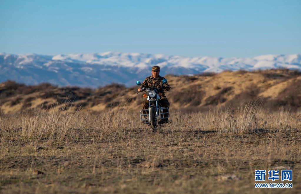 新疆生產(chǎn)建設兵團第10師185團職工馬軍武騎摩托行駛在管護轄區(qū)內(4月9日攝)。