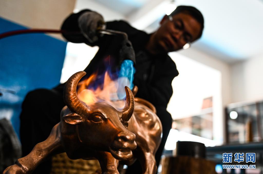 地處滇東北、烏蒙山腹地的云南會澤縣流傳著具有300多年歷史的斑銅制作工藝。斑銅工藝復(fù)雜,要采用高品位的銅為原料,經(jīng)過20余道工序制作而成。產(chǎn)品“妙在有斑,貴在渾厚”,風(fēng)格獨樹一幟。33歲的張偉是會澤“張氏斑銅”的第十三代傳人。自幼深受地域文化和家庭熏陶的他,大學(xué)畢業(yè)后,返鄉(xiāng)從事斑銅制作工作。在會澤古城的“銅匠街”,張偉創(chuàng)辦了斑銅傳習(xí)館,不斷研發(fā)斑銅新產(chǎn)品、傳承著這項非遺技藝?!鞍咩~是一種情感、一種文化,希望在我們這代人的努力下能夠更好地將它傳承下去,讓更多人了解斑銅的獨特魅力?!睆垈フf。