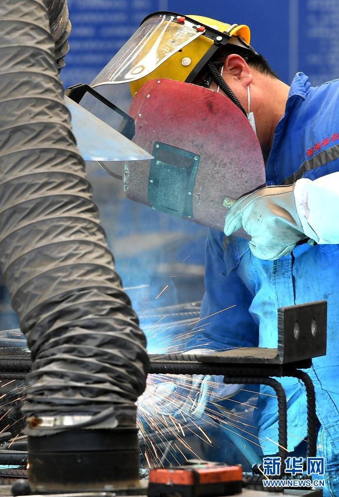 5月1日,在陜西西安地鐵八號(hào)線豐禾路站1號(hào)豎井施工現(xiàn)場(chǎng),中鐵七局的工作人員在作業(yè)。