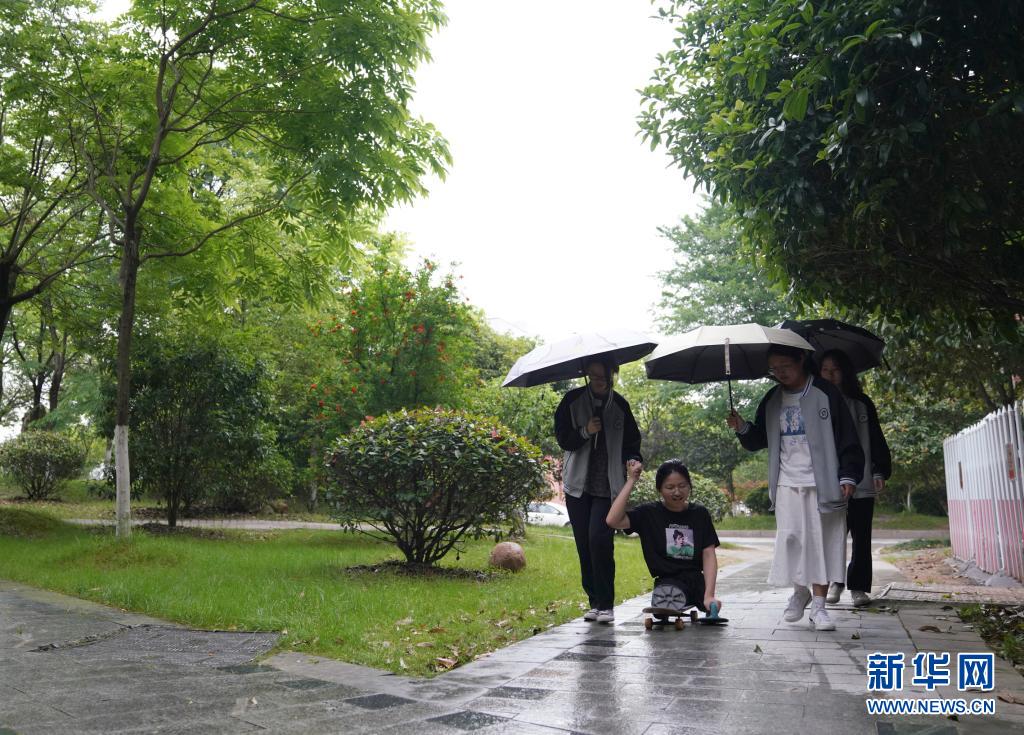 2021年5月10日,蔣張子怡(左二)和同學穿行在校園內。