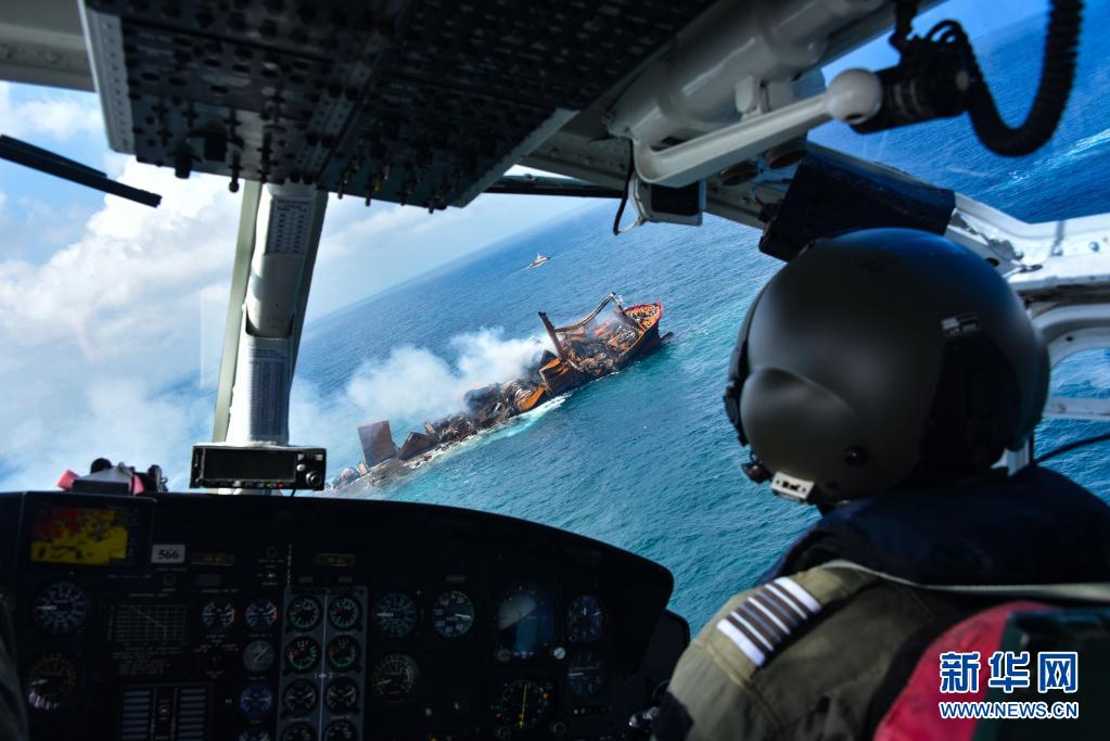 6月2日,斯里蘭卡總統(tǒng)戈塔巴雅下令將起火貨船“X-PRESS PEARL”號拖向遠離科倫坡港的深海區(qū),以防引發(fā)更大的環(huán)境災難?!癤-PRESS PEARL”號貨船5月20日抵達科倫坡港西北約9.5海里錨地時發(fā)出火警求救信號。斯里蘭卡海洋環(huán)境保護局官員5月28日表示,在科倫坡港附近起火燃燒的“X-PRESS PEARL”號貨船預計將會引發(fā)嚴重環(huán)境災難。新華社發(fā)(斯里蘭卡空軍媒體處供圖)