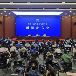 6月16日,神舟十二號(hào)載人飛行任務(wù)新聞發(fā)布會(huì)在酒泉衛(wèi)星發(fā)射中心召開(手機(jī)拍攝)。
