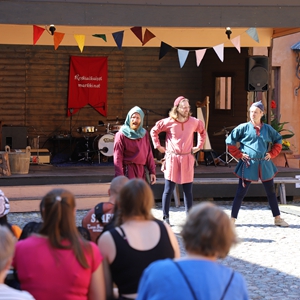 7月1日,觀眾在芬蘭圖爾庫舉行的“中世紀(jì)市集”上觀看演員表演短劇。
