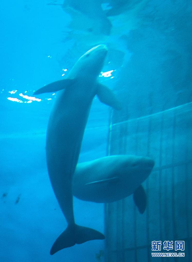 7月5日,江豚媽媽洋洋和小江豚YYC在水中游動(dòng)。新華社記者肖藝九攝