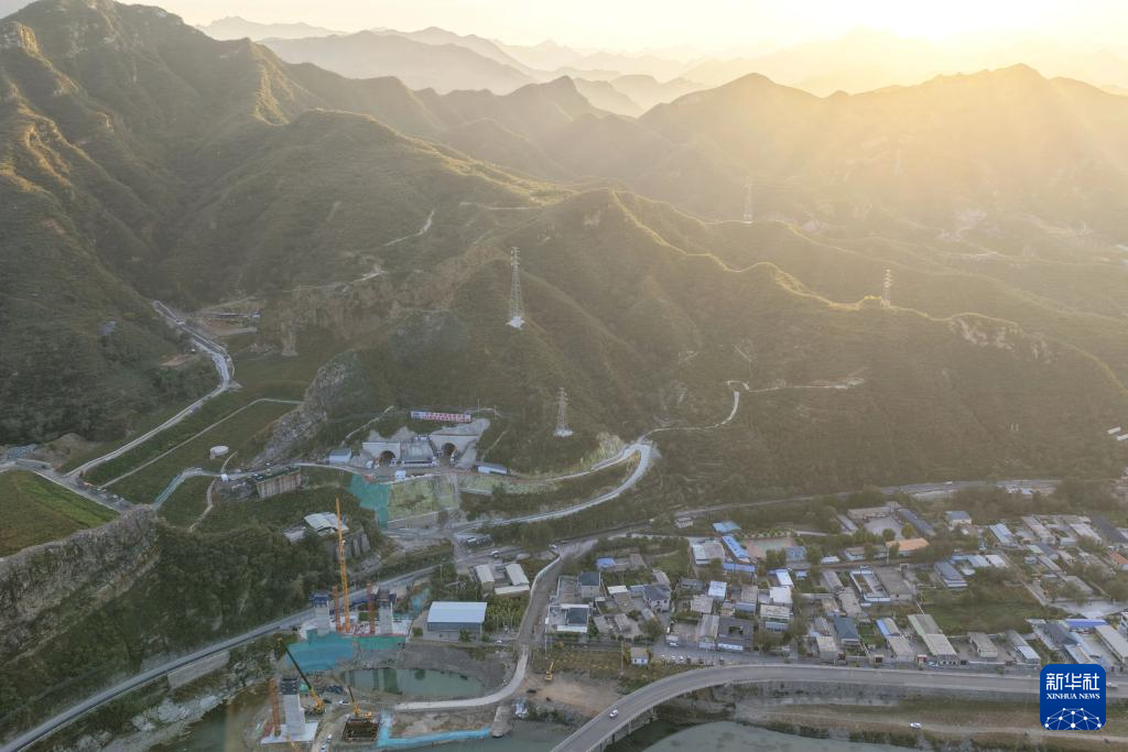 9月29日拍摄的北京108新线高速公路房山段黑龙关隧道施工现场(无人机照片)。