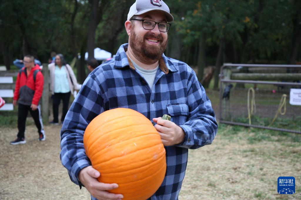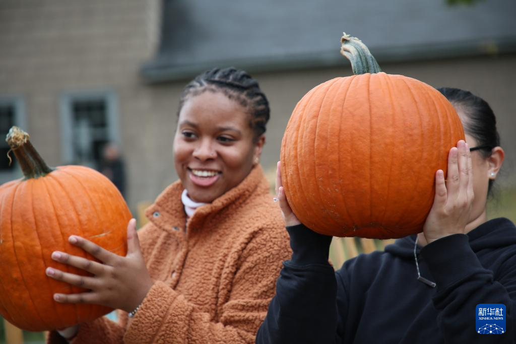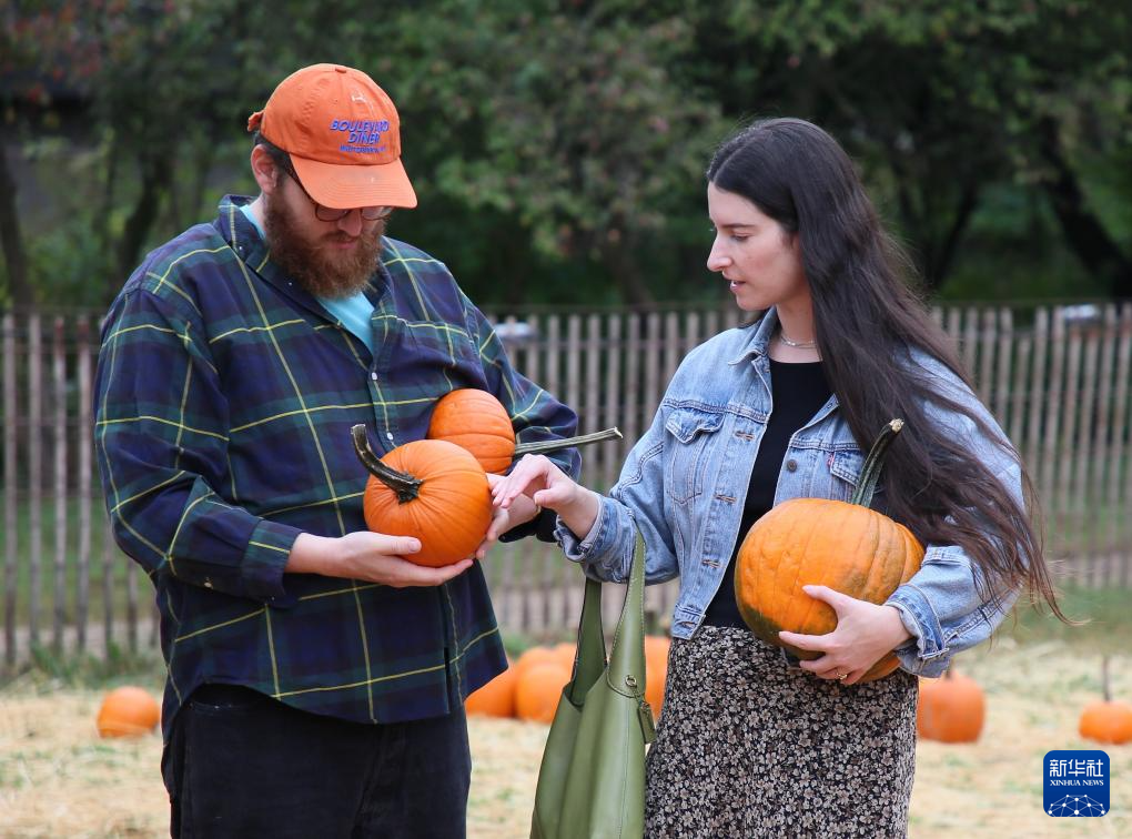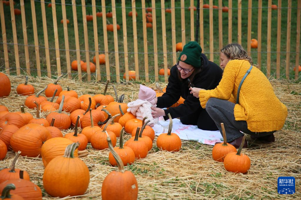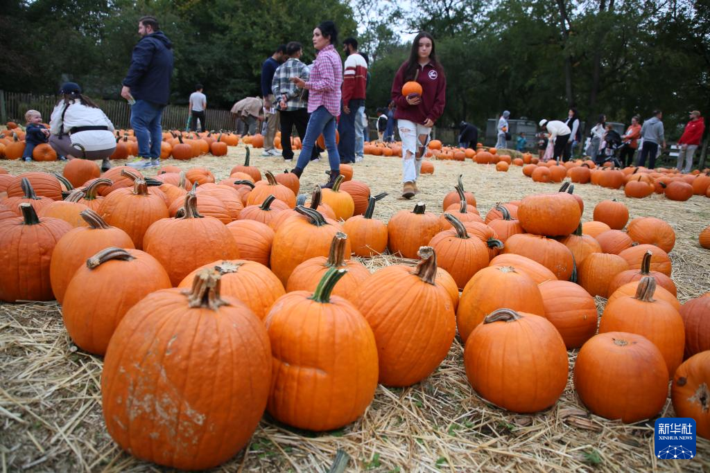人们在南瓜集市上观赏、挑选南瓜,庆祝金秋和丰收,为即将到来的万圣节做准备。
