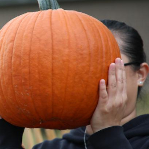 10月11日,在美国纽约南瓜集市上, 一名男子抱着选好的南瓜。