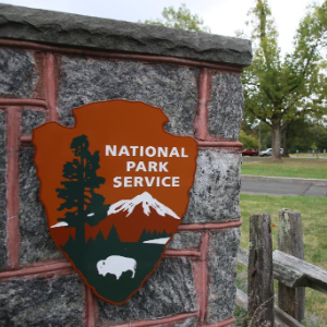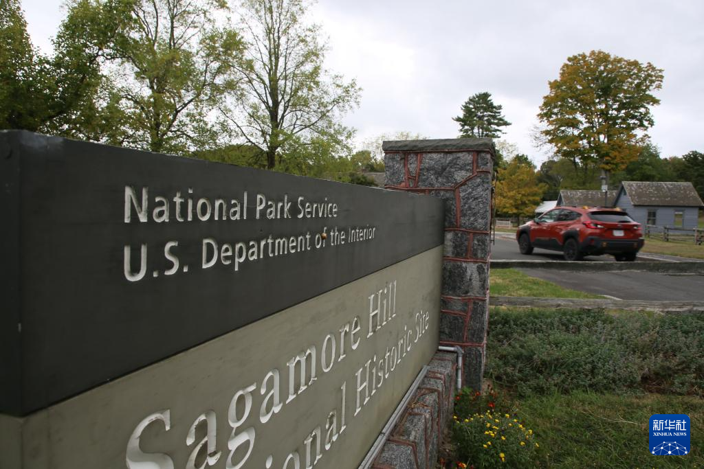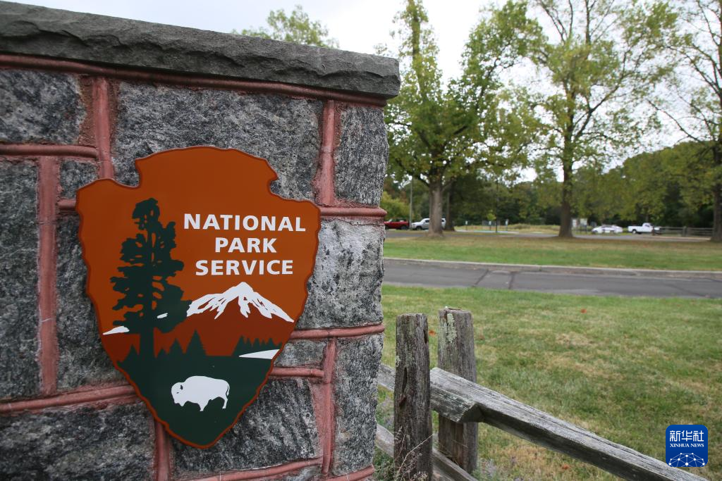 这是10月11日在美国纽约萨格莫尔山国家历史遗址拍摄的国家公园管理局标志。萨格莫尔山国家历史遗址部分服务暂停。