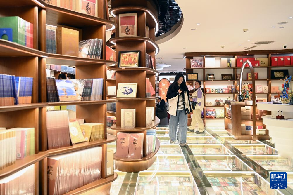 10月11日,游客在敦煌书局参观游览。